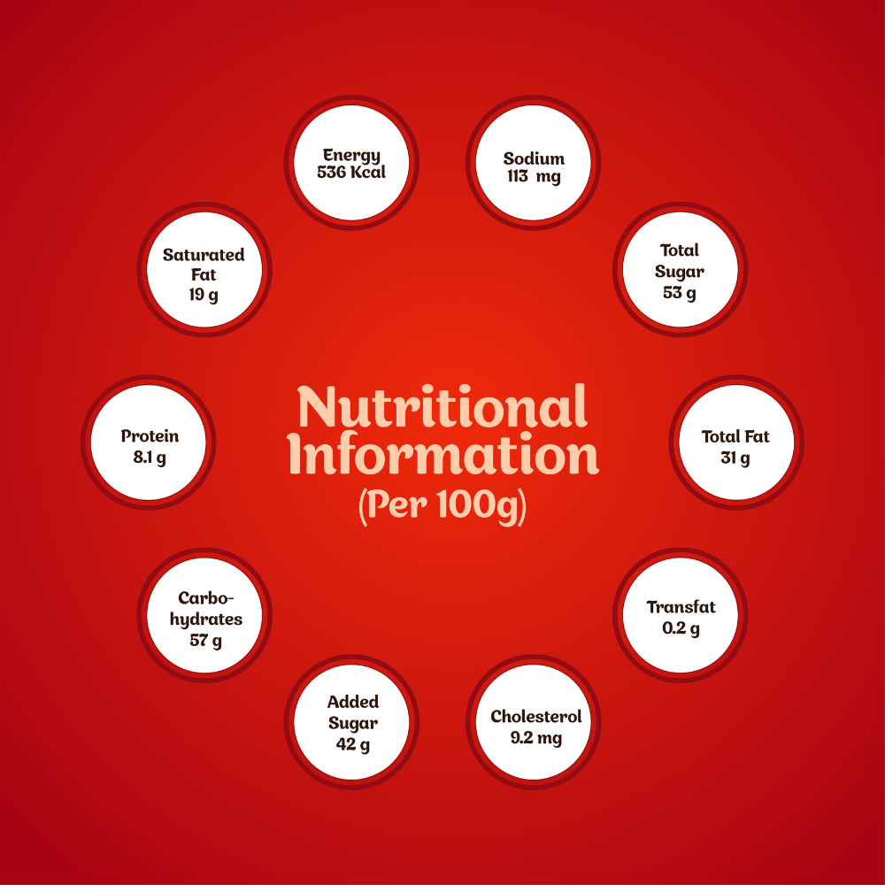 Sugar, cocoa butter, skimmed milk powder (SMP), cocoa mass, whole milk powder (WMP), emulsifier – soya lecithin [INS 322], salt, added flavour – artificial vanilla.